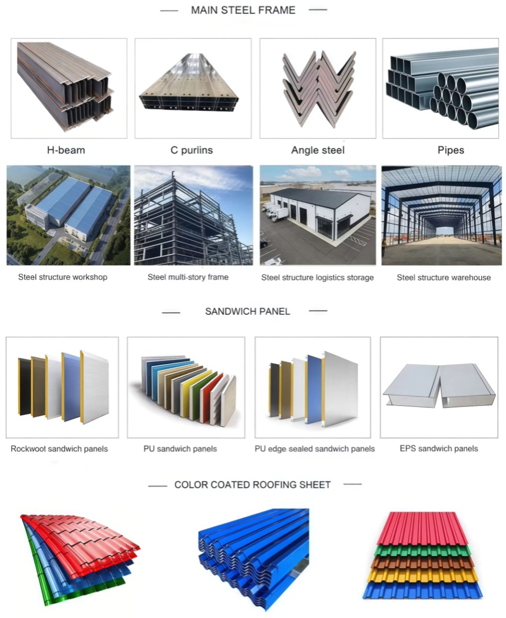 High Strength and Durability: The Heavy Steel Structure Prefabricated Warehouse is built using high-strength galvanized steel, offering excellent wind and earthquake resistance. The materials are specially treated to be rust-resistant and corrosion-proof, ensuring the warehouse can withstand various weather conditions for long-term use.