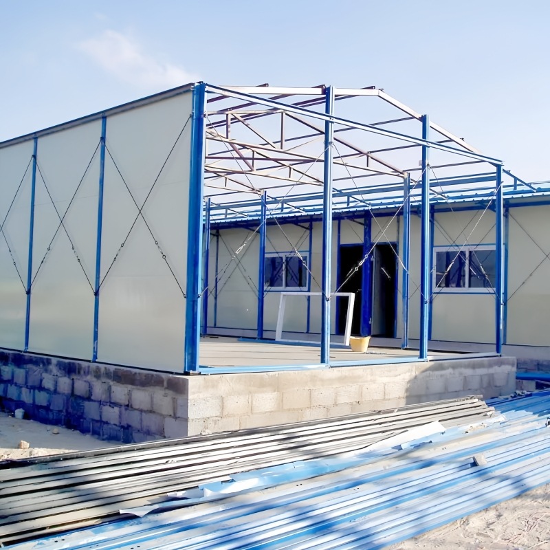 This Temporary Construction Site Prefabricated K House is a lightweight, modular construction product with simple structure, diverse functions, and convenient installation. It uses a light steel structure as the framework and is equipped with high-performance core-ply color steel plates as the wall materials, ensuring the overall building's stability and durability, as well as excellent insulation, waterproofing and soundproofing properties. It is widely used in construction sites, temporary dormitories, office spaces, warehouses, barracks and other short-term and long-term scenarios. Compared with traditional temporary buildings, the K-type Construction Site K House has significant advantages in structural performance, construction efficiency and environmental friendliness.