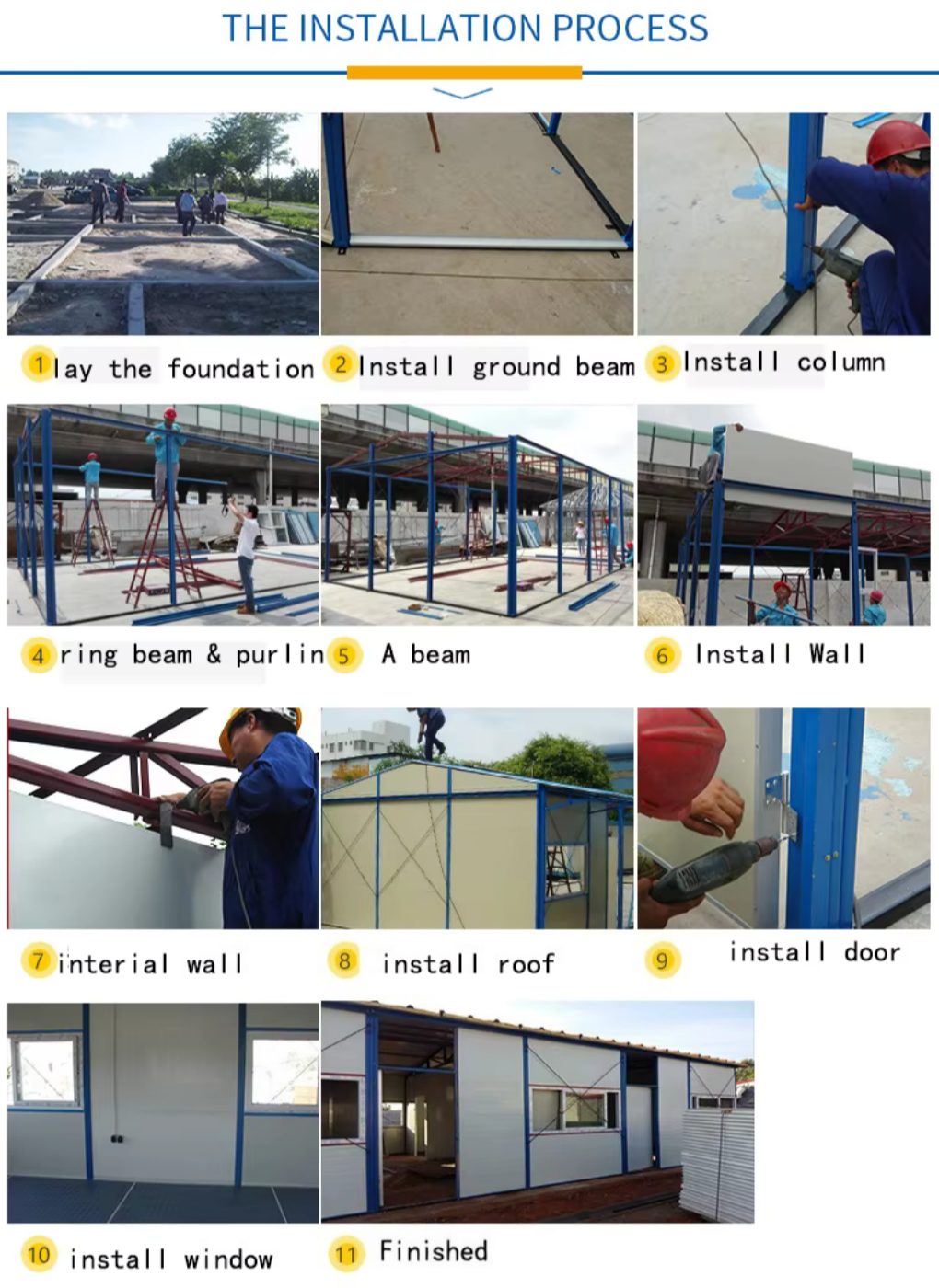 Cheap light steel structure prefabricated house is widely using in the different industry: the temporary house for road, railway and building site,etc. Also can be as temporary office, meeting room, headquarters, public accommodation and temporary store , school, hospital, parking lots, show rooms, electric house, repairing shop, gasstation etc.