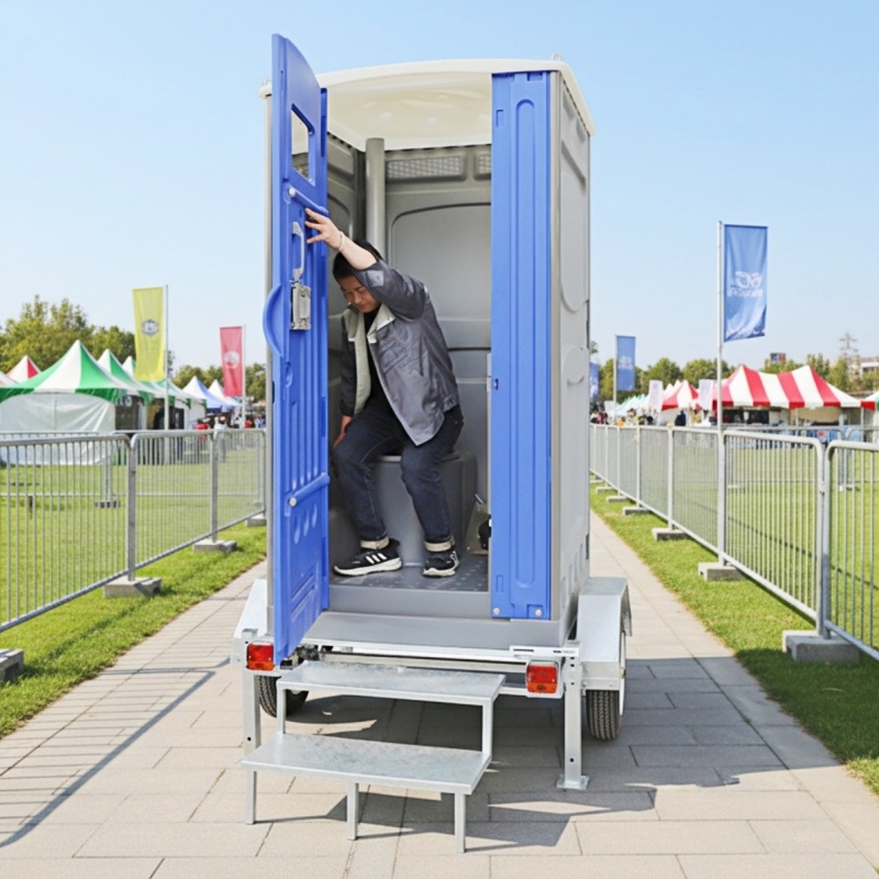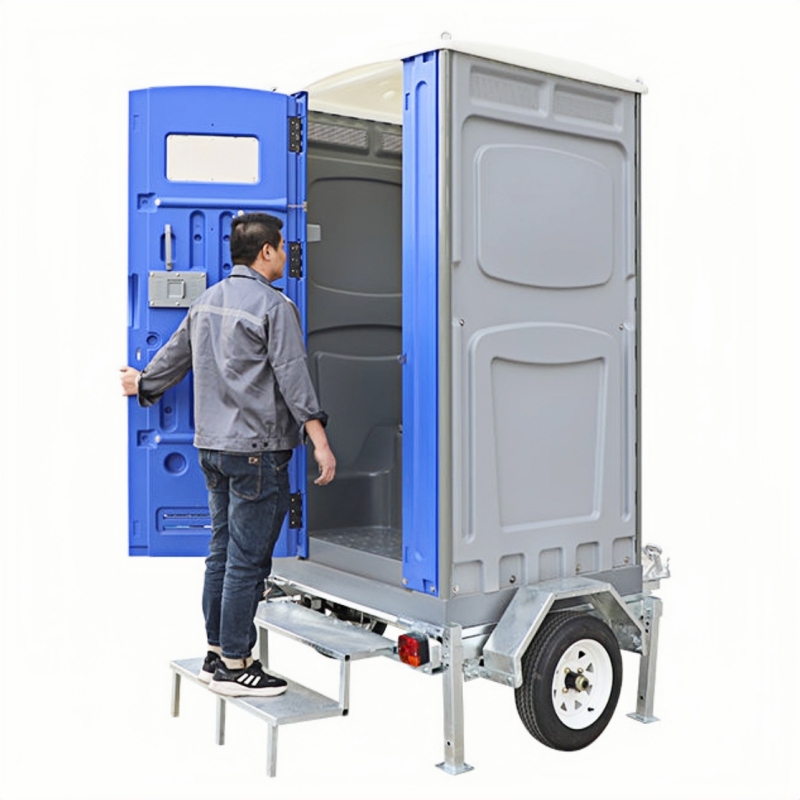 A2: It usually features a steel trailer frame combined with durable HDPE plastic toilet, ensuring strength, stability, and long-term outdoor use.